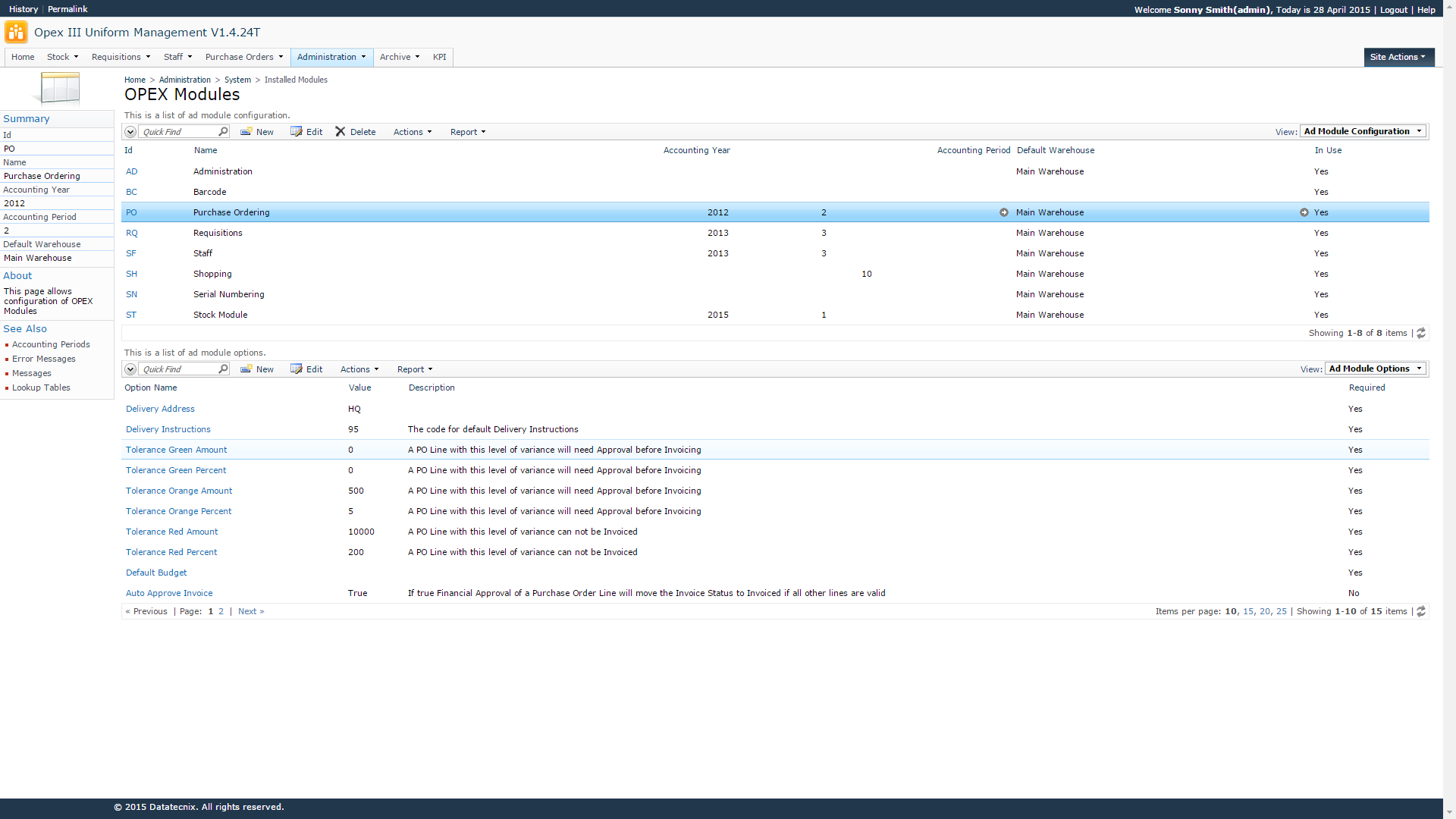 Tolerance Levels are set by the OPEX Administrator and are unlikely to require changing.